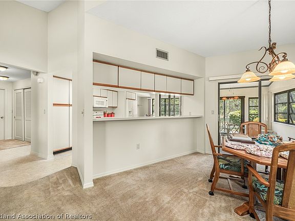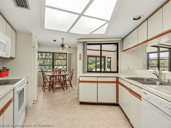If you're looking for a GREAT VIEW, this one's for you! Situated on a lovely lot overlooking a pond with a large, beautiful backyard in the desirable 55+ golf course community of Cormorant Point in Golf Hammock, this spacious 2 bedroom, 2 bath, 2-car garage home is ready for a new owner. The decorative painted driveway, landscape curbing, palm trees and manicured lawn add to the curb appeal. Step inside to a spacious open floor plan with vaulted ceilings, great room & formal dining area. The kitchen has an abundance of cabinets, a breakfast bar open to the dining area, plus a breakfast nook & pass-through window that opens to the enclosed porch, overlooking the backyard with grand oak trees and a serene pond beyond. The primary suite has a large walk-in closet and the ensuite bath features his & her vanities, a tub and corner shower. There's a nice size guest bedroom and tiled guest bath with tub/shower combination. The inside laundry room comes with a utility sink, shelving & closet for extra storage. The back porch/lanai is the perfect place to enjoy your morning coffee or evening cocktail, as well as the beauty of the peaceful pond and the surrounding Florida nature. Plus, there's a large patio out back, great for barbeques and entertaining friends. You're going to love having no neighbors in your backyard, just the beautiful view!
