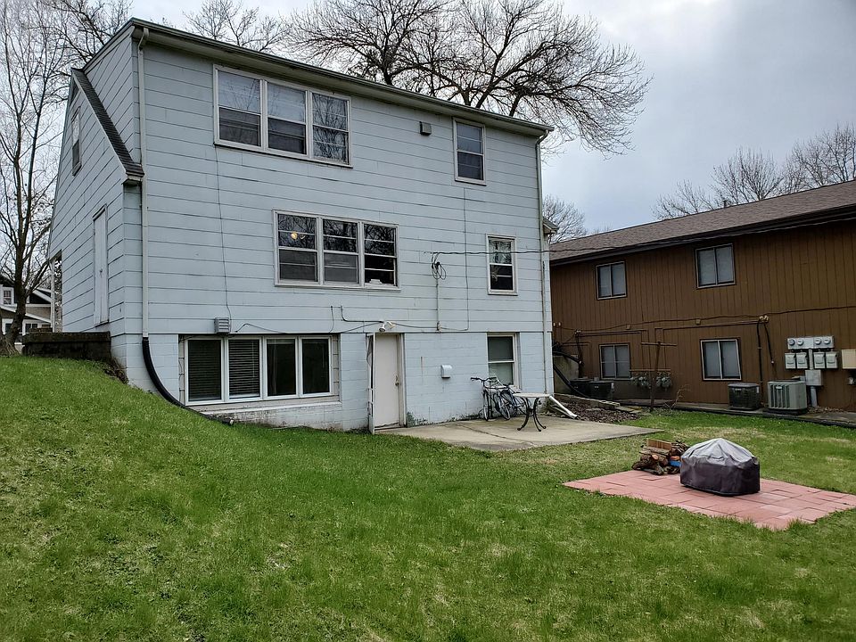 3305 West Street was once a single family homes but was converted into 3 apartments - one on each floor. It is just a few minutes walk to the middle of campus, several bus stops, and Campustown! Unit 1 is upstairs and has its own front door that opens directly to the stairs. Each bedroom has its own closet. The large living room is open to the kitchen, which features a dishwasher, newly painted cabinets, and will soon have a new counter, sink, and faucet. The entire apartment is freshly painted and has a dedicated parking spot in the driveway. Window unit air conditioners provided. The huge back yard features a paved patio and fire pit and opens onto an expansive nature area - we get lots of deer walking by. The clothes washer and dryer are in the basement and shared by all the units. Tenants split water, gas, and trash. Owner pays all utilities and is reimbursed by tenants. Call, text, or email with any questions!