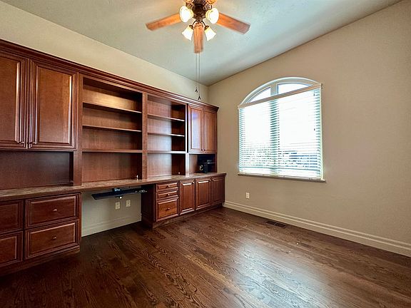 This beautiful custom built home features 3 bedrooms plus office, master is light & bright with 5pc bath, walk-in closet and access to a covered back patio. Open concept living, dining, and kitchen with vaulted ceilings and a fireplace. Kitchen offers custom cherry wood cabinets, island and breakfast nook that steps out to covered patio that extends the full length of the home. Mature landscaping, privacy fence, oversize 3 car garage with lots of extra storage. Close to hospital, shopping, and golf course.