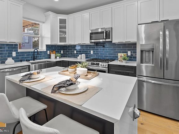 Welcome to 3306 E Lombard Street — Where High Design Meets Everyday Comfort This fully renovated 3-bedroom, 3.5-bath rowhome in East Baltimore checks all the boxes for a buyer who wants stylish finishes, smart design, and walkable city living without the noise or hassle. Step into a sunlit main level featuring rich hardwood floors throughout, a sleek electric fireplace, and a modern metal slatted accent wall that brings personality to the space. The kitchen is a true showpiece, designed for both beauty and function — complete with a dramatic waterfall island, drawer storage, and custom lighting that creates the perfect mood for anything from brunch to wine night. Upstairs, you'll find two spacious bedrooms, each with ceiling fans and great closet space, plus two full bathrooms with automatic lighting and high-end finishes. The top floor even includes a private deck — perfect for enjoying your morning coffee or watching the sun set over the city. The fully finished basement offers a third bedroom, another full bath, and a flexible space ideal for guests, a second living room, or your dream home office setup. A convenient half bath on the main floor makes entertaining easy, and every detail in this home feels thoughtful and elevated. While the home offers street parking, you'll quickly fall in love with the walkable neighborhood, where Patterson Park, local cafes, shops, and restaurants are just minutes away. This block is quiet, charming, and ideal for anyone craving a mix of city energy and personal peace. Best of all, this home qualifies for Baltimore City grants for first-time buyers, making it a smart and stylish move for your future. Ready to fall in love? Schedule your private tour of 3306 E Lombard Street today.