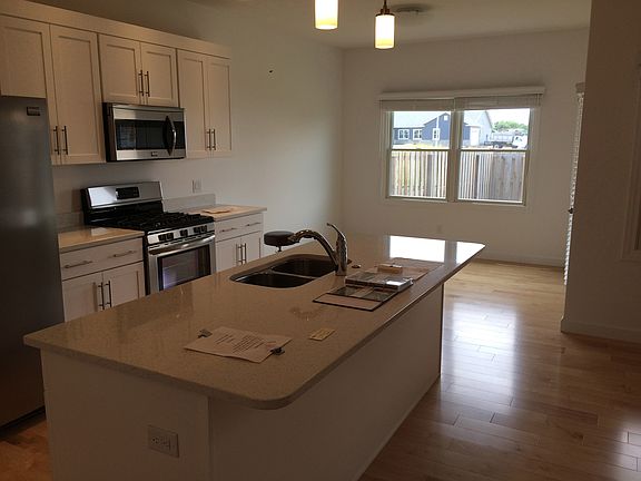This gorgeous like new attached home has so much to love! Boasting incredible curb appeal in an already gorgeous newer west end subdivision. You'll find yourself close to shopping, dining and minutes from downtown or interstate access too! Once inside you'll be won over by the wide open, naturally lit living space offering warm hardwood & a tasteful modern fireplace to enjoy. A chef's dream kitchen is bright & white with trendy cabinetry, backsplash & countertops. Also find a large eat in space, a generous island w/breakfast bar and access to an awesome covered back patio space. 2 generous bedrooms on the main floor include a master suite fit for a king with HUGE walk in closet & true dual vanity. Downstairs this home will grow with you easily if you need it too. A full basement is roughed in and plumbed with endless possibility for personalizing and finishing! This move in ready, darling ranch feels brand new & will surely steal your heart with all it's bells and whistles!