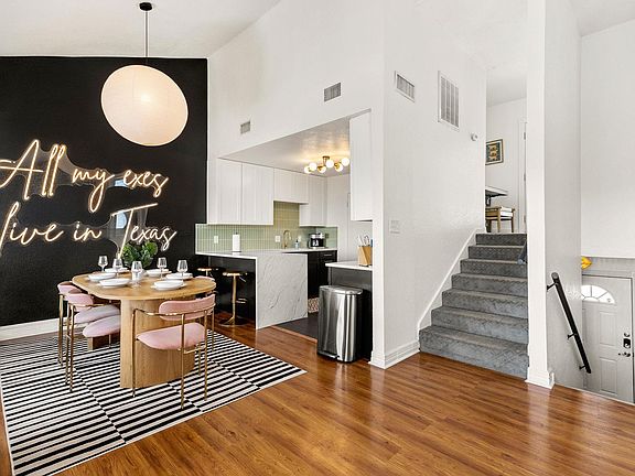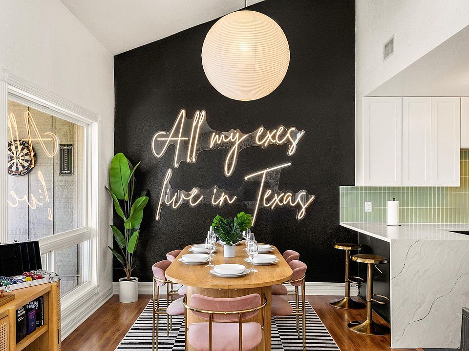 This 3-bedroom, 2.5-bath gem offers a multi-level layout designed for both comfort and style. The heart of the home is the living room, where vaulted ceilings, large windows, and a spacious balcony (the views are INCREDIBLE!) create an airy, inviting space that flows seamlessly into the dining area and renovated kitchen. Here, stainless steel appliances, sleek cabinetry, and a breakfast bar set the stage for everything from quiet mornings to lively dinners with friends. Throughout the home, you'll find thoughtful updates from modern chandeliers and ceiling fans to stylish bathroom mirrors and lighting that give each space a polished touch. The layout is perfect for a roommate situation, with spacious bedrooms that provide privacy and flexibility. The bedrooms open up to a private yard that extends the living space outdoors, ideal for relaxing with a cup of coffee or entertaining under the Texas sky, or enjoying a dip in the cowboy pool. Located less than 10 minutes from the bars, shops, and energy of Mueller, this home pairs modern upgrades with unbeatable convenience. Whether you're hosting friends, finding your own quiet retreat, or simply enjoying the view from the balcony, this home makes it easy to settle in and feel at home. Open to renting furnished at $3600. Furnished or Unfurnished, tenant is responsible for all utilities, but landlord will provide lawn and cowboy pool care.