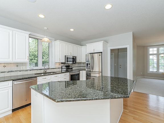 This custom walk-out 2-story features a unique floor plan w/ main floor primary suite & main floor laundry for easy one level living! The spacious kitchen boasts classic white cabinets, granite tops, stainless appliances & oversized patio door that lets in lots of natural light. Step outside & enjoy the private wooded backyard with fruit trees, 2-tier low maintenance deck with retractable awning, and views to the lake and Assisi Heights. If you're looking for more space, the walk-out lower level offers a large family room with tiled bar area, corner gas fireplace, and easy potential for a 4th bedroom with egress window. Two additional bedrooms and bath are found in the upper level. Other great features include newer furnace/AC, 3-car garage with pull down attic storage, sprinkler system, lower patio from the walkout french door , and a great location conveniently located off West Circle Drive and just minutes to all of NW Rochester's shopping!
