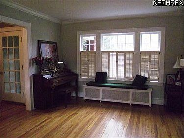 Handsome center hall brick colonial with tile roof and beautiful front porch set on a quarter acre. Welcoming foyer and gracious living room with feature fireplace and window seat. Formal dining room and sunny family room with built-ins are also on the first floor, which is light and bright with lots of windows and hardwood floors throughout. Charming eat-in kitchen with original wood ice box, which is now a decorative feature. Second floor has 4 bedrooms and 2 full baths, including a huge master bedroom with a fireplace! Interior has been freshly painted throughout. Attached two-car garage and spacious yard with deck. Excellent location near schools, library, shopping, walking/running/biking paths and transportation. It is a quick trip to University Circle, universities and hospitals. Available immediately; compliant with the City of Shaker Heights.
