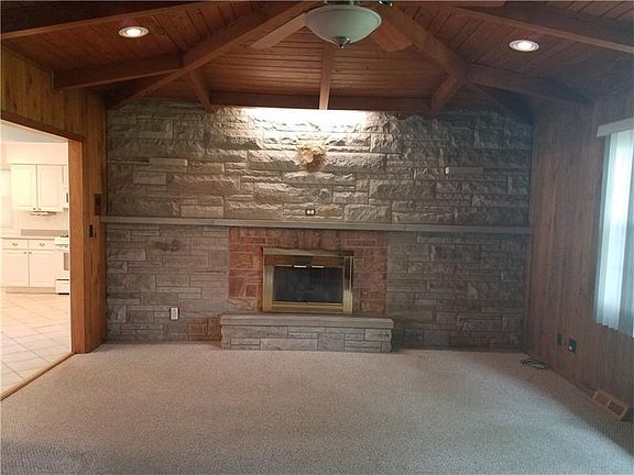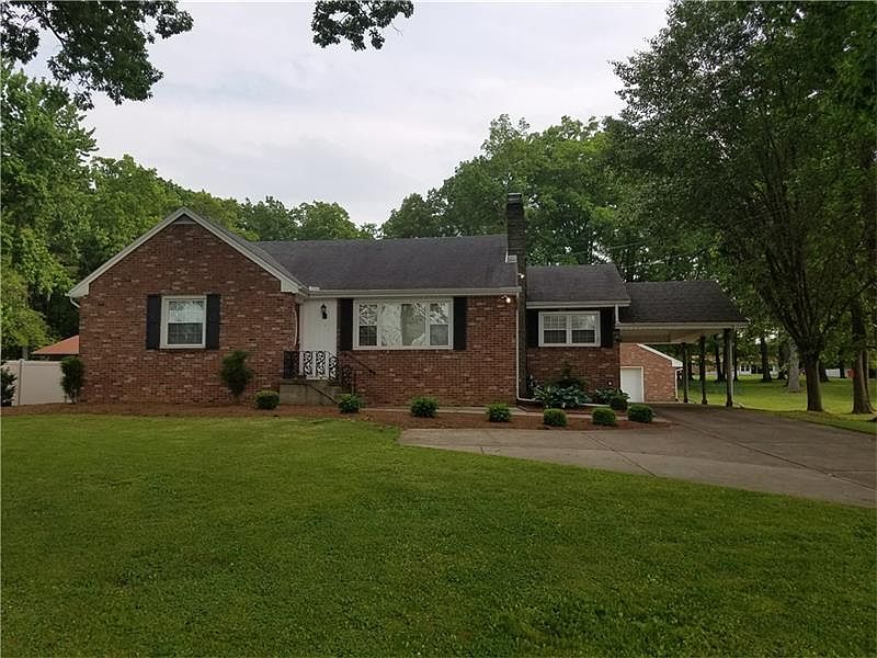 All brick Cape with 3 bedrooms on main floor and one up with the half bath up. Beautiful wormy chestnut walls and ceiling in living room. Stone wall with gas log fireplace. New kitchen and bath with Kraftmaid Cabinets and Corian counters. Hardwood flooring under carpets. New ceramic tile throughout the kitchen, dining, and bathroom. Tilt in windows new in 2006. Water softner new in 2009. Lower level is very spacious with a wood burning fireplace. Lower level is also plumbed for a full bathroom and has utility hook ups for a kitchen. Lower level was an apartment at one time. Oversized garage with a workshop in the back. Large lot. All cement driveway.