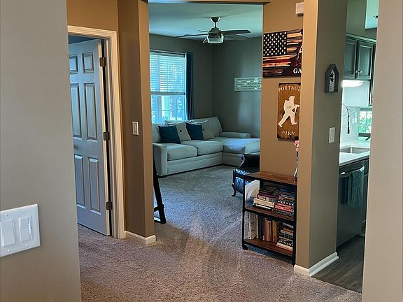 Welcome home to this beautifully updated End-unit condo offering comfort, style, and peaceful views. This 2-bedroom, 2-full-bath home and 1 Car Garage features a spacious master suite with a walk-in closet and private bath. Enjoy a serene setting next to a tree line filled with wildlife. You'll love watching deer, ducks, rabbits, and songbirds right from your patio! The west-facing patio is the perfect spot to relax and take in beautiful sunset views, complete with a lush hydrangea bush adding color and charm. Inside, nearly every detail has been thoughtfully updated: -Quartz countertops and a large stainless-steel farmhouse sink with pull-down faucet -Newer stainless appliances (2019) -All new flooring throughout (2021) -Freshly painted walls, trim, and doors (2022) -New outlets and switches for a clean, modern look (2022) -Furnace replaced in 2016 -Newer Kohler toilets -Master Closet Shelves and Drawers A private garage with built-in storage offers convenience and extra space for organization. The Dog Park is a 5-minute walk away as well as Butterfly Park! Don't miss this move-in-ready condo that perfectly blends comfort, updates, and a peaceful natural setting!