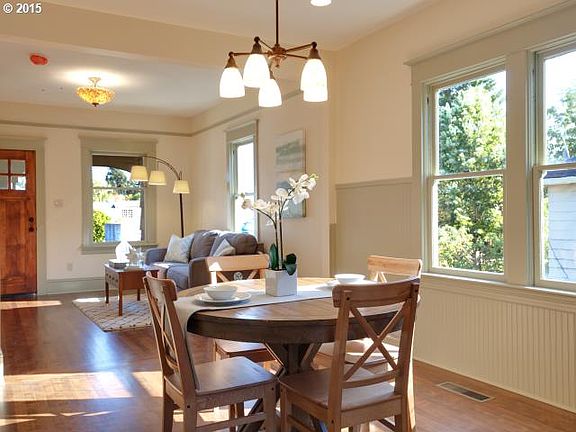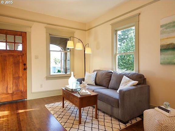 Newly restored home w/ covered front porch in North Portland. Light and bright w/ designer colors & touches throughout. Home features wood floors, high ceilings and ornate woodwork. Modern kitchen w/ paint cabinets and S/S appliances. Large bedrooms w/ wood floors. Basement is finished and has plenty of space to entertaining. Newly built garage and a professionally landscaped.