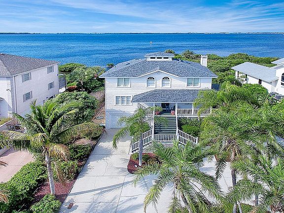 PALMA SOLA BAY MASTERPIECE WITH FULL BAY VIEWS! Well manicured landscaping graces the entrance to this magnificent property with a charming wrap around porch that welcomes you to paradise.Spectacular waterfront views,this 3236 sf home boasts 3 beds,den,4 ba,5 car garage & private dock leading to Palma Sola Bay, perfect for boating & fishing.The living room offers high ceilings,crown molding,fireplace,beautiful tile flooring & three expansive sliding doors w/atrium windows overlooking the lanai.The Florida room has gleaming hardwood floors,wall to wall sliding doors leading to the deck & breathtaking views.You will love preparing meals in your gourmet kitchen with an open floor concept, light wood cabinetry accented with sophisticated dark granite countertops & breakfast bar,stainless steel appliances,& plenty of cabinet space,it's perfect for entertaining family & friends.Your guests will envy the well appointed gas stove with double ovens that is centrally located in kitchen island.Fabulous & functional!It opens to a dining area where you can entertain guests while watching the sunset over the shimmering bay.In the evening, retreat to the Master Suite w/hardwood flooring, walk in closets, expansive bay window, & double glass doors that lead to a private deck.The master bath offers 2 vanities,granite countertops,jacuzzi tub & walk in shower.You won't want to leave this quiet peaceful setting that is Florida living at it's finest! Minutes to Anna Maria Island Beaches,boating to ICW & Gulf of Mexico!