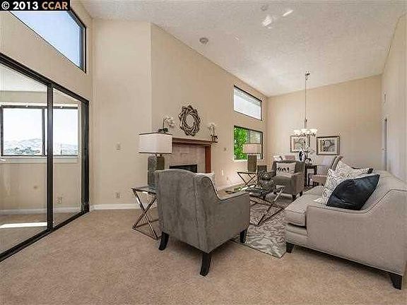 Stunning Mt. Diablo Views, 12' ceilings, fireplace, lots of glass, sun room, inside laundry. Updated throughout-Granite. . . Rare unit with attached garage and direct access to the house. Huge storage loft off laundry room PLUS additional enclosed single car garage with another storage loft. . .