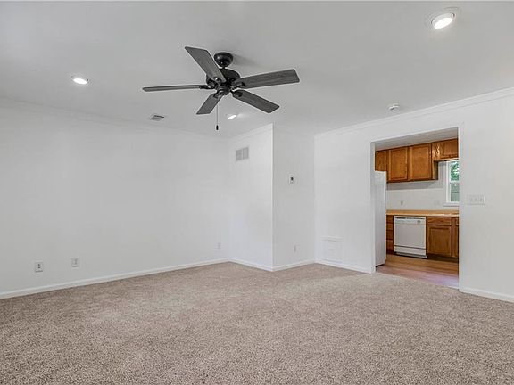 All upgrades include: New furnace and water heater. New ceiling fan in living room and all interior was freshly painted. Brand new carpet put in every room. Flooring was updated in entrance, kitchen, mudroom, and bathroom. Roof on home is a year old. Home includes all appliances, including washer and dryer.