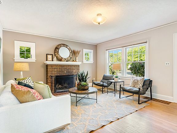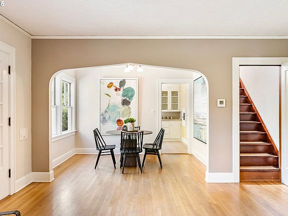 Quaint from the curb, this Richmond/Waverleigh cutie offers 2 bedrooms/ 1 bath in the home plus an additional flexible living space in the detached studio with bedroom & full bathroom! Situated on a quiet corner lot, filled with abundant natural light & period charm! Formal living & dining rooms with large windows and archways, wood burning fireplace and extensive original hardwoods throughout. Sweet and efficient vintage kitchen complete with tile flooring & original white cabinetry – ready for updates to make it your own! Main floor includes freshly painted bedrooms and full bathroom. Enjoy a soak in the vintage bath complete with hex tile floor, pedestal sink, and period fixtures. Hallway linen closet offers convenient storage complete with a laundry chute! Additional light and bright finished bonus room on top floor with Marmoleum flooring– great for 4th bedroom, play space or home office! Full, open basement with laundry has ample ceiling height with plenty of room for expansion or storage needs. Basement updates include tankless electric water heater, updated plumbing, and seismic strapping. Owned solar panels offer savings on power bills! Sweet side yard with established and thoughtful plantings; fig & plum trees create a calm and peaceful outdoor space. Storybook patio leads to rare additional studio space– great for guests, hobbies or rent for addl income! Permitted & inviting, this 180 sq ft studio is complete with a full bath, flex sleeping space, and closet. Enjoy the whimsical cloud themed vaulted ceiling, stained glass windows, & two sets of French doors to take in the garden blooms! Updates include newer wood clad windows throughout the main level, updated plumbing, newer gas furnace, water heaters in 2023-2024; exterior paint in 2020. Friendly & peaceful location, ideal walking distance to Division’s top eateries/shops & Clinton's bike corridor! Minutes to downtown Portland & close to public transportation. Ample street parking. Walk score of 89! [Home Energy Score = 5. HES Report at https://rpt.greenbuildingregistry.com/hes/OR10237947]