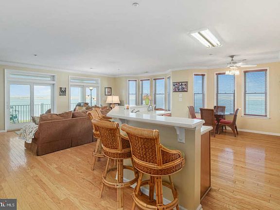 Vacation living- year round! Beautiful condominium right on the water! What more could you want with this peaceful water view (both inlet and ocean), lots of space, open feel and an association that will do so much for you? Amazing amenities- in-ground pool and deck area, clubhouse, pool table recreation room, exercise room, tennis courts and more! Lovely condo boasts 9 foot ceilings and hardwood floors. Beautiful open kitchen, family room and eating area which is so desirable for today's lifestyles and for entertaining. Kitchen is very open with eating area for a separate table AND an island for food prep and barstool seating too. Large great room with ceiling fan, crown molding, an extra nook for desk area or more seating and all opens to the balcony overlooking the beautiful grasses and water. The most peaceful spot! Huge laundry room, large pantry and spacious bedrooms are perks. Master bedroom has so many windows for tons of natural light, a walk-in closet and big bath with soaking tub, stall shower and double vanities. Convenience is the name of the game with covered parking, elevators, open balconies and charming amenities. New in 2006 and beautifully maintained property. Views of Stone Harbor too! Just minutes off the bridge and nestled with views of Champagne Island and Hereford Inlet. Don't wait- do your homework and see that this is priced to sell!