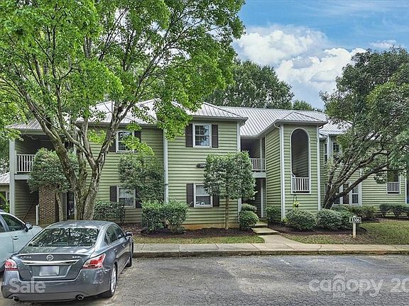 Wonderful 2 bedroom/2 bath home in popular Hunters Run. Fabulous location just minutes from SouthEnd Uptown, Freedom Park and Park Road shopping and dining! This first-floor unit has been freshly painted and immaculately maintained. Bright, spacious and open living and dining areas with wood floors. Living room features wood fireplace and opens to covered patio. Bright white kitchen with new, stainless steel appliances and granite countertops. Desirable split bedroom floor plan — both bedroom suites have large closets and brand new carpet. Covered patio has large storage closet. Community features sidewalks and outdoor pool. This home is move-in ready!