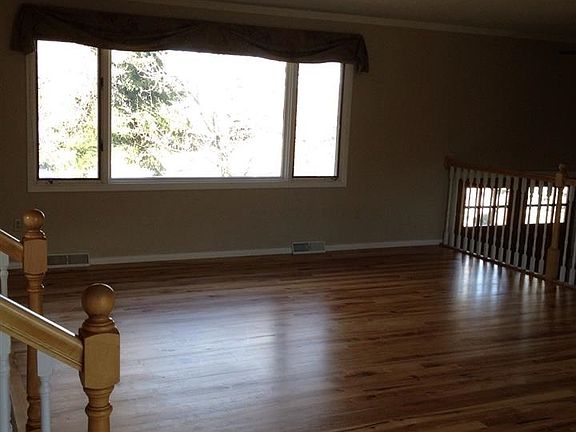 Great south side home with all new paint and wood floor refinished lower level bath has new flooring fixtures and vanity.Very large deck off of kitchen and dining area with landscaped back and front yards filled with beautiful tall pines and many other types of trees and shrubs. Kitchen was remodeled in 2001. 2 family rooms, one on lower level with wood stove, one on upper level with gas stove. Fireplace in LR is gas and FP In office downstairs Is gas. 2 bedrooms and office lower level. Master is on main.