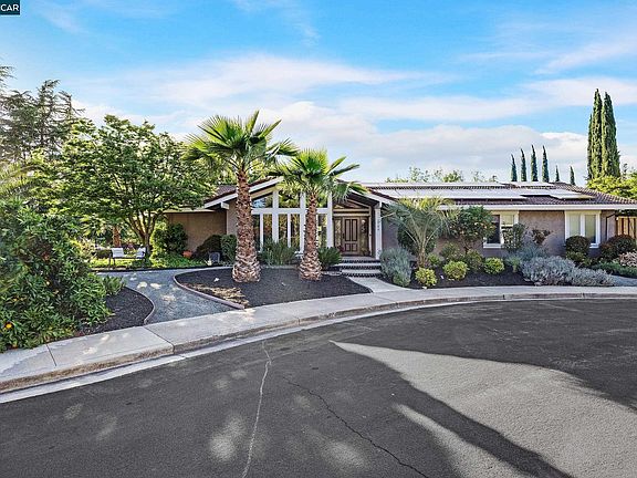 Single-story 2,766 sq ft 4 bed 2 &1/2 bath Northgate home. On small cul-de-sac w/gorgeous wooden floors, skylights, vaulted ceilings & large windows throughout create luxurious living. Elegant features throughout including dual fireplace in sitting room & living room. The modern kitchen updated 2021 features built-in floor to ceiling pantry, corner lazy susan, bay window, wine fridge, French door refrigerator, gas stove, dishwasher, SHARP smart microwave drawer, Quartz countertops, & farmhouse sink. PAID SOLAR PANELS adorn the roof. Generously sized master suite includes en-suite bathroom with spa-like features of shower steam room, radiant heated floors & towel warmer. Private backyard is an oasis and an entertainer's paradise, featuring sparkling salt water Pebbletec pool, hot tub, outdoor fireplaces & charming gazebo. Buyer can choose to keep commercial grade gym equipment in garage as home gym or asked to have removed prior to closing. This home's endless amenities with it's ideal location only blocks from top-rated schools, parks, shopping, Shadowbrook winery & dining create the dream California lifestyle.