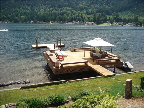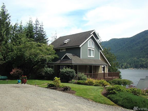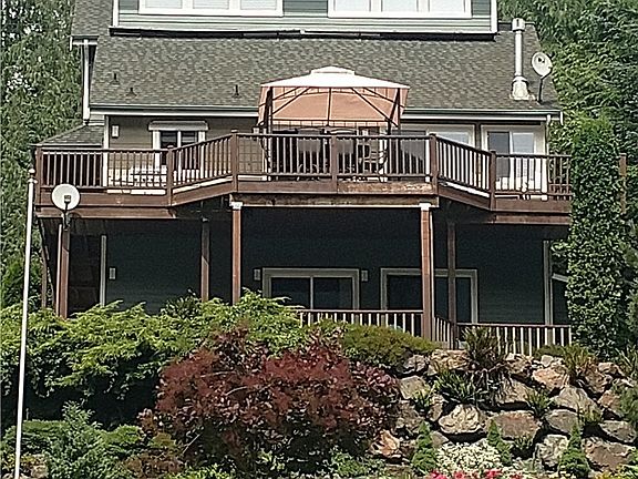 Glacier and Island views from this immaculate home on Deer Park Lane. 60' of lakefront with bulkhead, huge shared dock with neighbor. Main floor has kitchen with new granite countertops, open living & dining with deck overlooking the lake. Main floor bedroom, full bath, laundry. Upper level w/2 more bedrooms & full bath. Lower level rec room has 3/4 bath & deck overlooking the lake. Beautifully landscaped and meticulously maintained. Good sun exposure, great value!