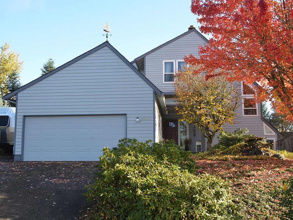 Beautiful tri-level home w/awesome views of coast range. Larger fenced yard w/RV parking, fire pit area, garden shed, above ground pool (included), tree house and fenced garden area. Outdoor living space created on main level deck. Home has newer 50 yr roof, 1yr old water heater, 2yr old disposal range, oven/dishwasher are only 1yr old. Complete kitchen-main level remodel, fresh paint throughout most of home. Primary bedroom is the entire upper level that includes an office/loft. Open 1/30 11-1.