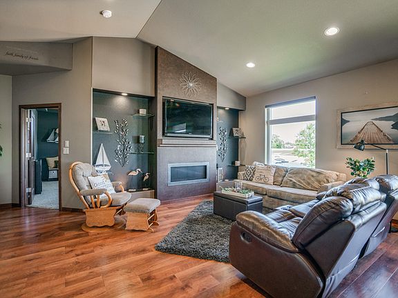 If you are looking for a stunning waterfront home for entertaining, this is it! 4 bedrooms, 5 bathrooms (1/4 bath in garage!), oversized triple garage with a kitchenette! This home has in-floor heating in the garage, kitchen, basement and master bath!! Surround sound is in the whole house, garage and patio! The Hunter Douglas window treatments have a remote! The dream kitchen has a stainless double oven, built in microwave oven, elevated dishwasher, maple cabinets and a large pantry. The kitchen Karndean tile flooring is heated! The cozy living room has a gas fireplace (TV stays) and fantastic views! The master suite is complete with lighted tray ceiling, custom tiled shower with a hand held and rain shower head completed with double stainless sinks and a heated tile floor! There is a home office conveniently located right off the front entrance. The basement has lots of natural light from the large windows, lots of storage, a bedroom with full bath, half bath, a very large second bedroom that could be separated to another bedroom! The family room is huge! Garage door off the back of the garage leads to a Sundance 7 person hot tub and a covered patio with glass railings! The flagstone walkway with an adjacent waterfall lead to a large stamped concrete patio with a pizza oven and a fire pit! The large dock is included for convenience to go out anytime and enjoy the Missouri River! This property has an underground sprinkler system that is feed with river water...so your water bill will not reflect watering your lawn! The home is supplied with an endless supply water heater. The basement is plumbed for a wet bar if you desire. Beautiful views of the water and sunsets! Prequalified buyers only! Home has been pre-inspected! Call your favorite agent today for a private showing!