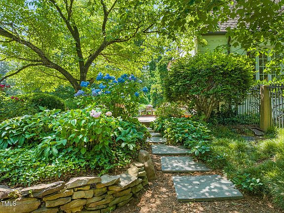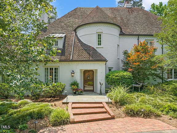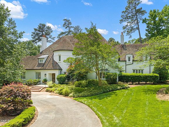 A rare opportunity awaits to own an architectural jewel listed in the National Register of Historic Places and certified by the NC Office of Archives and history. The Wiley and Elizabeth Forbus House is gracefully sited on 1.3 acres along the 7th fairway of the Donald Ross-designed Hope Valley Country Club Golf Course. This landmark residence is a defining example of classic Norman Provincial Revival architecture. Cherished as one of Hope Valley's most iconic homes, its legacy has been lovingly preserved by only four distinguished owners. From the original 1930s roof to the inviting arched wooden front door, every detail radiates timeless character and refined charm. Spacious formal and informal gathering areas offer the perfect backdrop for entertaining or unwinding in peaceful solitude. The newly added luxurious heated pool, surrounded by a custom-designed iron fence adorned with exquisite wrought iron leaves, creates a private oasis for both relaxation and recreation. French doors open to multiple patios, a covered outdoor fireplace, lush gardens, and al fresco dining spaces that invite year-round enjoyment. A tranquil porch off the primary suite offers sweeping golf course views—an idyllic setting for your morning coffee. The state-of-the-art chef's kitchen features a six-burner Wolf gas range, Subzero refrigerator, wine cooler, exceptional cabinetry, and a generous island ideal for both culinary pursuits and casual gatherings. Modern comforts blend seamlessly with historic elegance, including a Tesla charger, two tankless water heaters, dual primary closets, and a spa-inspired bath. While privately nestled within its lush estate setting, this remarkable home also offers unparalleled convenience in the heart of Hope Valley—combining the serenity of country estate living with exceptional urban accessibility. This is truly a once-in-a-lifetime opportunity to own a celebrated piece of North Carolina's architectural history.