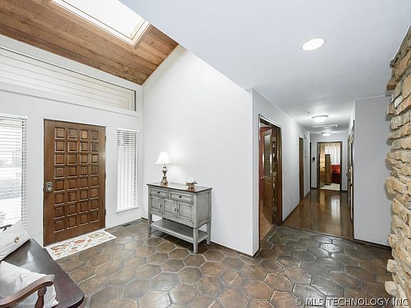 Beautiful ONE level home on corner lot in Jenks school district! Gorgeous living rm w/cedar ceiling, floor to ceiling stone fireplace and wetbar! 4 bedrooms (or 3 plus office), 2 full baths, master suite w/ tub and separate shower, formal dining, NEW ROOF Oct 2019, condenser 2017, furnace 2013, Large kitchen w/breakfast nook, fully fenced! Tons of closet space! Welcome Home!