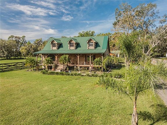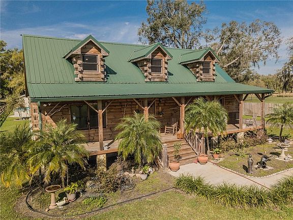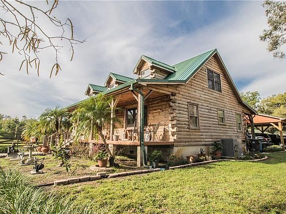 This is a truly impressive custom-built northern pine log home on a fully fenced 1.5-acre lot. The home features a spacious kitchen with solid wood cabinets, double glass door pantry, stainless steel appliances & dinette, large living room/dining room combo with cathedral ceiling, exposed beams & laminate floor. The 23x12 master bedroom is located downstairs; the adjoining master bath includes a large shower, dual sinks & a walk-in closet. 2 bedrooms are located upstairs along with a full bath with tub/shower combo; one of the bedrooms is a spacious 18x13 & has storage closets. The crawl space is accessible, has concrete base & can be used for added storage. A front & back porch provide shade & a cozy place to relax as you gaze out over the beautiful yard that has been well maintained. There is an above ground pool with custom deck. Beyond the pool is a 33x20 enclosed covered/screened building that houses a full kitchen with restaurant grade sink & large area for gathering. This building also boasts a ½ bath, several ceiling fans & misters on the roof for added comfort. Then onto the incredible 3 ½ car garage; this fully functional garage and workshop includes 4 bay doors, can accommodate large boats, trucks, trailers, etc. There is 210 power, storage room, sinks inside & out (fish cleaning area), newly installed concrete walkway & the ½ garage is suited for lawn equipment/ golf cart storage. Other great features include a metal roof, Brand New AC, added S30 insulation, spray foam & much more.