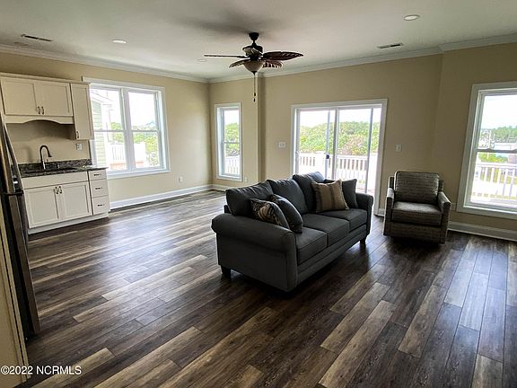 Check out this 1/2 duplex on the third row with ocean and sound views. Perfect for a new second home or rental investment. Buy now before interest rates go up! The top level has a large great room with granite counter tops, a half bath, and a spacious master bath with you own soaking tub. The large decks give you sound and ocean views. The second level has a bedroom with a bath, bedroom 2 with a hall bath, and a large extra den. All rooms open out to a 10 foot deck for outside living! And in addition to all this, you have a garage that can accommodate 4 SUVs. Great storage for the boat! Plus even more extra storage!!! Some furnishings convey. See pictures. Currently a long-term rental. Lease expires 6/30/2022 for $2795 a month. Agent Remarks: EMD payable to closing attorney of choice.