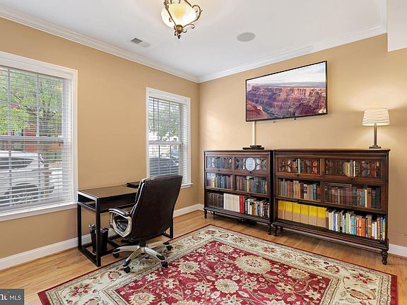 Beautiful townhome in the heart of the city in close proximity to shopping, dining, and entertainment. The entry-level welcomes you and offers a guest or bedroom suite, access to the 2-car garage, and a spacious foyer. Arrive into the main level and experience crown molding, chair railing, box wainscoting, plantation shutters, in-home speaker system, gas fireplace with dentil molding mantle, and gorgeous hardwood floors that continue throughout. Let the gourmet kitchen inspire your inner chef boasting a breakfast bar, backsplash, sizable pantry, pendant lighting, stainless steel appliances, 42? cabinetry, and granite counters. The formal living room features glass french doors, a bay window, and high ceilings. Relax and retreat to the tranquil primary bedroom suite highlighted by plush carpet, a walk-in closet, jetted soaking tub, double vanity, and ceramic tile walk-in shower. Entertain on the penthouse level that provides an ideal indoor and outdoor space accented by a wet bar, powder room, and deck with amazing views of the city! Updates include; fresh paint through-out, new carpet, hardwood floors refinished and new refrigerator. Major commuter routes include I-95, I-83, and I-695.