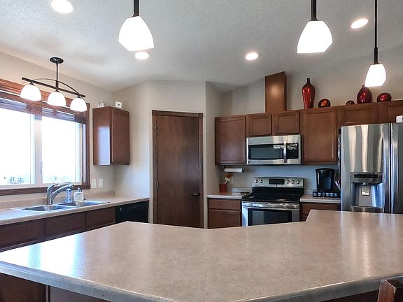 Spacious Ranch Style Home with just over 3,000 sq ft of living space in NE Bismarck. As you enter in from the front porch you can feel the love & laughter that surrounds the open & functional living space. One of the two laundry rooms is just to your left along with 3 bedrooms including the MASTER SUITE & a full bath. Just off the dining room is a nice deck overlooking the fenced in yard & patio below. The lower level has a large family room along with 3 more bedrooms, a full bath. laundry & storage. This home also has a walk out patio door with a nice large patio to enjoy as well & a larger shed to store your outside equipment. Check this home out today!!