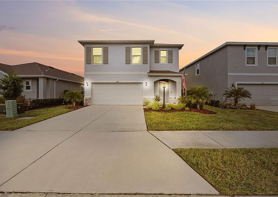 Star Farms Standout: the custom MOVE-IN READY home you’ve been looking for - without the $1mil price tag. General Contractor owned. This 2 story, all-concrete block home has been fully customized with over $80,000 in upgrades. Just minutes from AND zoned for the brand new Lake Manatee K-8. The open-concept 1st floor with bedroom + bath, provides a perfect flow between the upgraded kitchen, dining + living area with custom entertainment built-in with stone & shelving. Outdoors you’ll find a fenced backyard, lanai with an extended roofline, a 2-car garage with its own A/C & insulated garage doors, whole-home water filtration system. Inside, you are welcomed with LVP flooring throughout 2nd floor (except on the stairs), upgraded plumbing and lighting & custom closets in all bedrooms. Every detail has been carefully curated to create a home that feels both custom and move-in ready. Beyond your doorstep, enjoy the resort-style amenities of Star Farms: multiple pools, scenic sidewalks, a coffee shop, restaurant, coffee shop & more — all designed to enrich your lifestyle. Don’t miss the chance to own a home that combines luxury, community, and value in one.