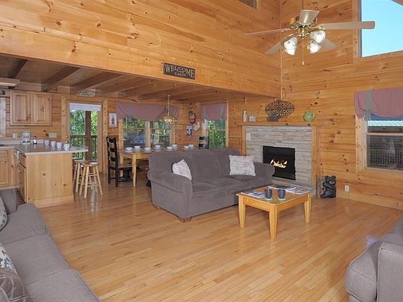 6 bedroom, 5 bath cabin in Eagle Ridge North with an excellent view! Great location close to the Parkway in Pigeon Forge. Convenient to most all area attractions. Features include an open floor plan, cathedral ceilings, hardwood floors, gas log fireplace, and a large master suite. There are no steps to enter this cabin, and the main level does have a bedroom and bath. Comes fully furnished and decorated. Does great on rental. Offered at an excellent price!