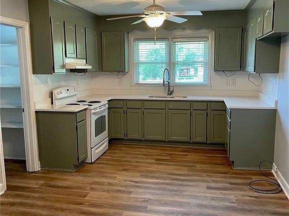 - Included: Electric Range, Exhaust Hood, Gas Water Heater