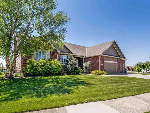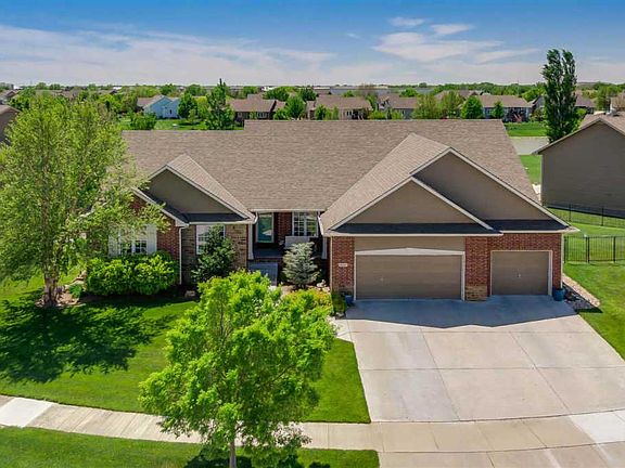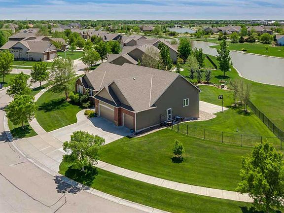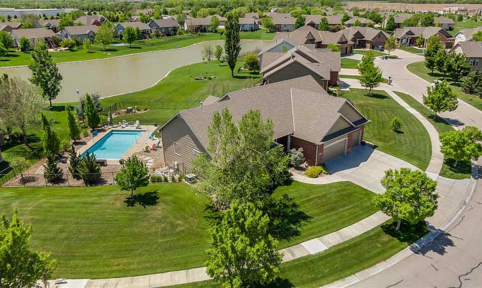 Your home oasis awaits you, your children, friends, and other family members. This property features a 30,000 gallon heated salt water sport pool, childrenâs splash pad, basketball court, and hot tub beautifully framed on a half-acre lot overlooking a pond. This is not your customary drainage pond either! Rather, this pond is found in Fox Ridge, known for itsâ natural Kansas landscaping and within walking distance of the Maize South schools. Entering this home your eyes will be drawn to the large windows framing the view, seen not just from the living room but also from the kitchen, theater room and the master bedroom! The covered deck is ideal for having morning coffee or afternoon drinks. If you enjoy entertaining you will appreciate the large dining space and charming fireplace. The kitchen is beautiful as is but, look further and you will find a walk in pantry as well as a laundry room/butlersâ pantry. The owners smartly bumped out the washer/dryer area allowing ample walking space along with the built in storage. This house has tons of storage too! The 3 car garage has space for a work bench, riding mower with storage above, on the walls, and a built in with a functional landing perfect for that extra freezer or a drop bench. The room sizes are all generous as well in this home . The master fits large furniture with space for a chair to enjoy a quiet book. Large walk in closet and double sinks make this master suite ideal for relaxation. Downstairs you will find another fireplace, full wet/snack bar, and two additional bedrooms all with a view of the pool and pond. This is a walk out basement so you and your guests can easily enjoy the outside splendor and hot tub. Buyers, please also note that all work completed by the sellers was done so using quality, professional contractors so no DIY projects to be concerned about either. This home has a 6th bedroom area with egress window potential but sellers currently use it only for storage. This truly is a rare home and opportunity to enjoy a lifestyle not often found in our community.