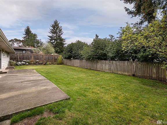 Great opportunity for first time buyer or investor! Three large bedrooms, hardwood floors, updated full bathroom and new ceramic floors in kitchen, dining room. and bathroom. Spacious living room with wood burning fireplace and huge level fenced backyard with patio, plus a two car garage. Natural gas furnace and water heater. Large utility room with extra storage or possible space to add 2nd bath. Quiet neighborhood close to restaurants, shops, Seahawks and easy freeway access.