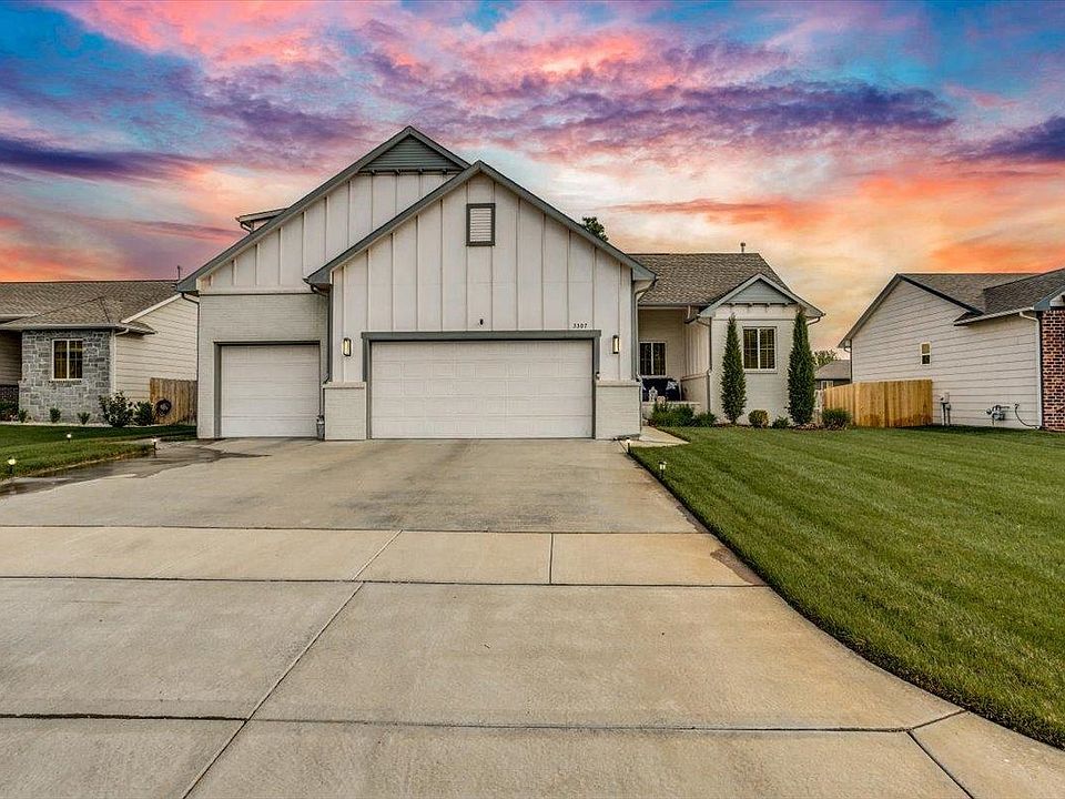 Make this your next home on one of Wichita’s exclusive private lakes! This beautiful 5-bedroom, 3-bath residence offers modern finishes, soaring vaulted ceilings, and an open, inviting floor plan perfect for both daily living and entertaining. Enjoy outdoor living at its best with a spacious deck, oversized patio with pergola, and a privacy-fenced yard, all nestled on a quiet cul-de-sac. The desirable Blue Lake community provides walking paths, a playground, pickleball and basketball courts, and the rare tranquility of private lake access, all just steps from your door. With quick access to Hwy 235, you’ll be close to everything Wichita has to offer while still enjoying the peaceful charm of lakeside living. Don’t miss this opportunity to own in one of the area’s most sought-after neighborhoods!