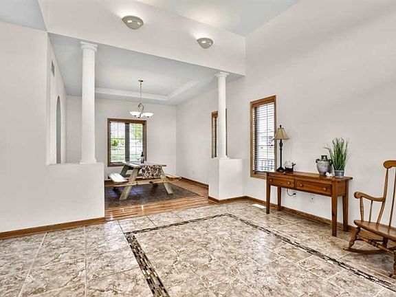 Wonderful custom designed and Amish built home with over 3600 sq.ft. of living space, unique features, and filled with lots of natural light. Two story foyer, 9 ft ceilings throughout, 12 ft ceiling in living room, and trey ceilings in the dining, family room & master bedroom. The open concept eat-in kitchen offers custom maple cabinets, new granite counter tops, center island, and walk-in pantry. This home offers 5 bedrooms, 3 upstairs, one on the first floor and one in the basement(with sitting area and private full bath). Spacious master suite features his and hers walk-in closets(huge), full bath with dual vanities, corner jacuzzi tub and separate shower. The finished basement includes a large recreation room/second family/game room and has plenty of storage space. Fully fenced back yard, irrigation system, and brick patio with pergola is perfect for entertaining. Recent updates include new roof in 2021, radon mitigation system(2019), new sump pump and backup sump pump. Additionally, this lovely home features a 2-car oversized garage. More space than you'll ever need! Desirable South Ridge neighborhood with many walking/biking trails and playground. Move-in ready! It can be yours today!