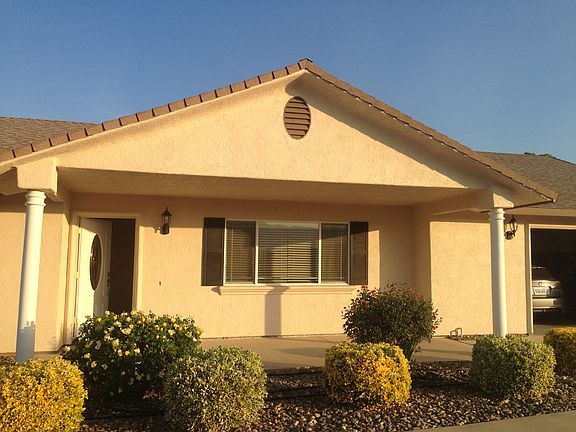 Custom home on top of the hill on nice half acre lot near the lake and golf course. You'll love the floor plan of this 3 bdrm 2 bath single level home with master located separate from guest bedrooms & bath. Travertine tile kitchen dining & laundry floors, gorgeous kitchen with stainless appliances including double ovens, walk in pantry, access out to covered patio. Nice tile work in the guest baths.Fruit trees, 10x12 garden shed, terrific views,perimeter fencing & automatic gate