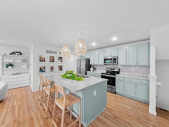 WHY build when you can own this stunning, meticulous 2 story home that is less than 2 years old overlooking the canal! With 4 bdrm & 2.5 baths, this residence offers an open floor plan, upgraded lighting & laminate plank flooring that exudes warmth & sophistication throughout. The kitchen features upgraded cabinets, a stylish backsplash, ss appliances, spacious island w/ cabinets all the way around that provides ample room for meal prep & casual dining. Walk up the stairs to master bdrm w/ large walk-in closet & master bath w/ adult height dual vanity & stand alone shower. Balcony is off master bdrm to enjoy picturesque views & peaceful moments as you relax & unwind. Add'l 3 bdrm, full bath, small loft area & laundry rm completes the 2nd level. Outside, backyard is backing to a tranquil canal that leads to the big lake. Lower level is perfect for storage &/or awaiting your own unique design. Garage has 12'6" Ceiling. New Town has so many amenities, you feel like it is "Resort Living"!