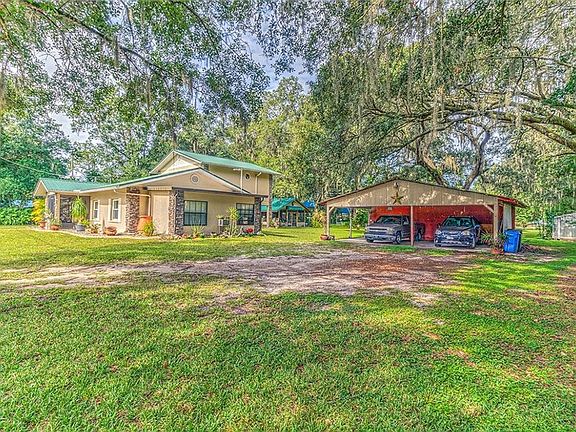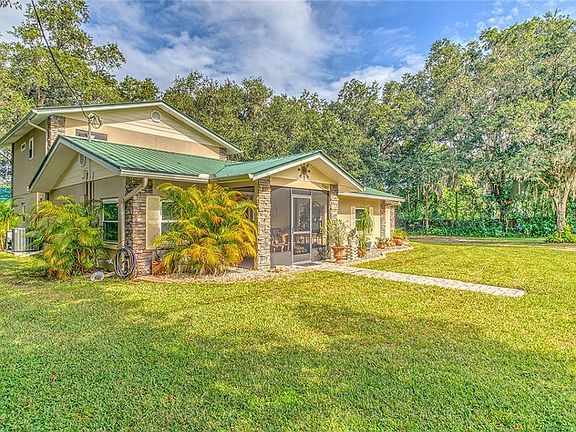 Stunning Custom Home in the desirable Cork area of Plant City on 1 ACRE (MOL). Entering the front door you will find a large open great room floor plan with beautiful tile throughout. The Fully equipped kitchen features stainless steel appliances, custom cherry all wood cabinets, beautiful granite counter tops with a 11-1/2' bar and walk in pantry with frosted glass door and automatic light. Laundry / Utility / Mud room is spacious and has separate entrance from the back yard. Upstairs you will find the Master bedroom 1 featuring panoramic views of the property, all hardwood flooring, a 6' x 11' walk-in closet along with a 9' x 24' master bath featuring a 9' x 6.5' shower with dual sides, 4 shower heads and 2 teak built in seats. Downstairs is also a Master Bedroom 2 featuring all tile flooring, a walk in closet and tub/shower, along with a 3rd bedroom and a hallway guest bath which also includes a walk in shower. Out the rear French doors will lead to the 18' x 22' detached Screened Lanai, great for simply relaxing, entertaining or Family gatherings. Also on the property you will find a 30' x 30' carport with workshop in the rear, a 12' x 24' metal utility shed, a 10' x 10' greenhouse and a 8' x 8' pump/well house with a whole house water softener system! The property boasts many gorgeous oak trees providing lots of shade, an array of vegetation along with beautiful bamboo. At the very rear of the property you will also find a small pond. This home features 2 New Trane energy efficient AC Units - separate units for upstairs and downstairs, New energy efficient double pane windows throughout the home and a whole house instant water heater! All savings to the utility bill. Make your appointment to see this beautiful home today!