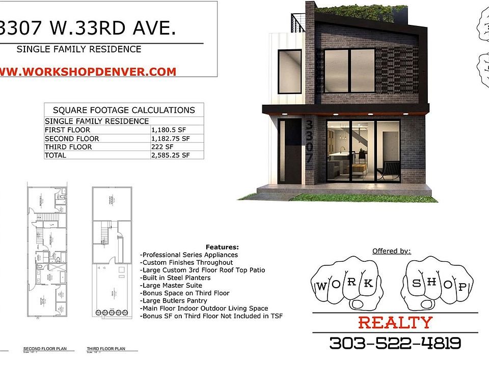 This 3 bedroom, 3.5 bath, three story home features an open floor plan, chefs kitchen with large island and professional grade stainless appliances, solid hardwood flooring, a large roof top deck with great views, high-end designer finishes throughout, 2 car detached garage and much more. Renderings are not exact representations. Photographs are of previous projects.