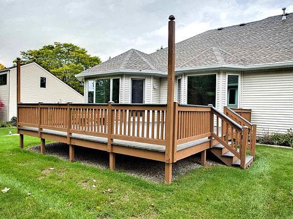 Spacious Executive one story home features a gourmet kitchen with Corian & Granite Countertops, Wet Bar with Refrigerator and 4 seasons room which leads out to a spacious composite deck. Master Suite features trayed ceiling, Double sink vanity, walk-in tiled shower as well as tile surrounded jetted tub. Yard features professional hardscaping, perennial landscaping and mature trees. Attached 3+ car garage features basement access.