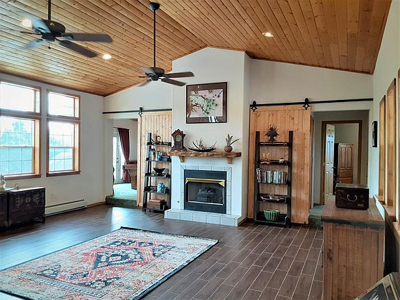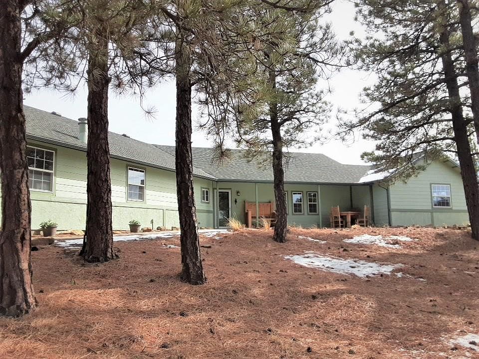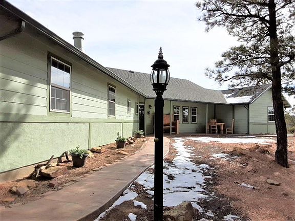 On 35 acres of Park like setting, with tall ponderosa pines and mountain views where the wild life abound; 15 mins from Historical Trinidad in most wanted Santa Fe Trail Ranch, here sits this Perfect Ranch Home. Designed for easy living, with its newly tiled bright and spacious living room. Barn doors, tons of windows and high Cathedral ceilings. Wood stove for cozy evening in the master bedroom and Gas fireplace in Living Room. Deck and hot tub for peaceful time or just absorb it all from the front covered porch. Fenced dog run, 2 car garage with workshop, you have it all. Call for a private tour of this very Special Place.