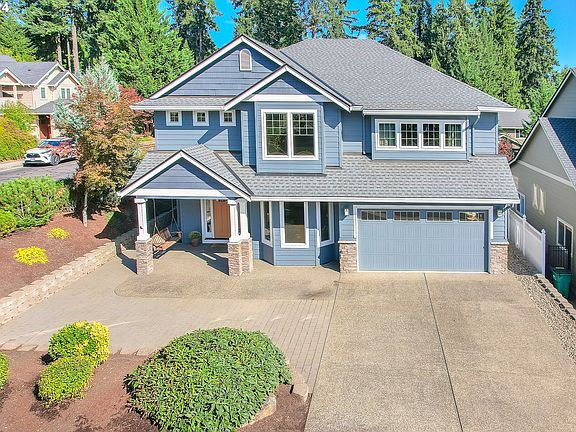 This house, custom-built by Rich Bailey Construction, is a showcase of high-quality materials and attention to detail. The stained glass windows at the entry welcome you into the home. High ceilings provide a wonderful sense of space and plenty of natural light. It boasts a spacious kitchen with a butler's pantry, featuring granite countertops, hickory cabinets, a copper farmhouse sink, a six-burner Viking range and gleaming walnut floors. Just off the kitchen you'll find a level backyard and patio with gas hookup for a barbecue, perfect for relaxing or entertaining. Inside, you'll find a large loft and a bonus room with two balconies adding even more charm to the house. The primary bedroom is a luxurious retreat including two walk-in closets, beautiful tile work and a jetted tub. The new composition roof replaced in 2020 and new water heater tank installed in 2021 offers key components of added value to the home. Positioned on a corner lot in a neighborhood near the park, within a close distance of schools, and it's conveniently located just 25 minutes from the Portland/Hillsboro area, makes it a great find for anyone looking for a new home!