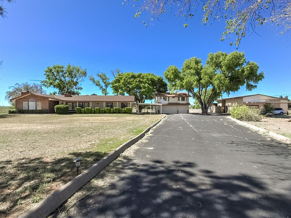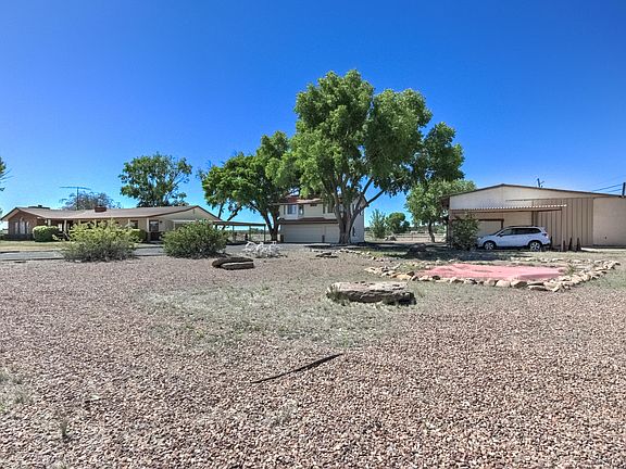 REDUCED - ICONIC PROPERTY! Five bdrm, three bath home (one bedroom currently used as an office) on 3.46 acres has a stately paved entry with fields on both sides & white pipe fencing PLUS: darling 2 bdrm 1 bath apt/guest quarters with great views that's above the 3 car garage, 4 car carport, 1272 sf barn/workshop/ tack room, 837 sf steel building, & two wells (one 6'' well is private, 1 that is shared). Comfy home w/split floorplan has a formal living room w/vaulted beam ceiling, along with a family room/kitchen/dining area. All appliances stay. Recently repainted, there are new ceiling fans throughout & refurbished bathrooms, etc. Master bedroom has an attached nook/nursery w/French doors. Huge shade trees grace the land, and a wonderful front porch provides lovely views of the pasture.
