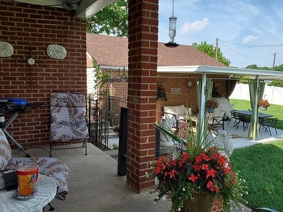Hurry up and make your appointment to see this charming all brick 1 & 1/2 story home featuring 2 bedrooms & 1 bath w/ bonus room on 2nd level. With brick arched covered, front & back patios and a fully fenced in back yard, this home shows off lots of detail. The formal living room has a gas logs fireplace w/ formal dining room close by. The kitchen has custom built in's, laundry hookups & updated appliances. Both bedrooms are on the main level and share a full hall bath w/ tile flooring. A brick outbuilding has power, a workshop, and a 3rd covered patio attached, w/ single carport on the opposite side. Many updates have been made to this home. Original hardwoods have been refinished, some windows & doors have been updated, hot water heater updated in 2017, new roof in 2017, sump pump updated 2018, new well pump in 2019, and updated electrical & plumbing per seller. A cellar basement is accessible from the outside.
