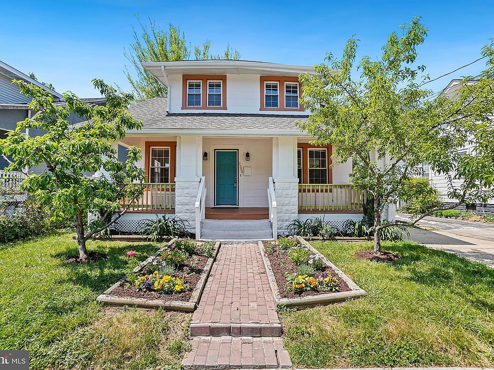 Welcome to 3308 40th Place, a spacious and impeccably maintained Craftsman bungalow home boasting 3 bedrooms, 2 updated full bathrooms, and over 1,800 square feet of living space. Dating back to circa 1928, this unique property exudes charm and character, accentuated by glorious architectural details and thoughtful updates. As you approach this tranquil property, a charming brick pathway welcomes you, adorned with flourishing flowerbeds on either side. Step onto the expansive and inviting covered front porch, complete with a tongue-and-groove ceiling, setting the tone for the warmth and comfort found within. Inside, you'll discover beautiful wood flooring, crown and chair rail molding, and updated fixtures throughout the home. The light-filled living room offers a welcoming ambiance, while the formal dining room, with a charming barn door, provides an elegant space for gatherings. The updated kitchen features granite counters, upgraded appliances, including a five-burner gas range, a farm sink, ample prep space, and a fabulous coffee bar with floating shelves. A versatile sunroom/office with shiplap walls extends the living space, with access to the stone patio and backyard, perfect for indoor-outdoor living and entertaining. The main level boasts a generous en-suite bedroom with a walk-in closet and an attached updated bathroom. Upstairs, two additional bedrooms, including the primary bedroom, await, each with ceiling fans for added comfort. The large primary bedroom features a useful sitting room and a deep closet. The modern full bathroom on this level highlights distressed wood tile flooring, a classic claw tub, and a corner pedestal sink. Additionally, this level provides easy access to eave storage. On the lower level, there is storage space, a rough-in for a bathroom, and a laundry area. Stepping outside, the generously sized fenced yard awaits, featuring a delightful patio, a convenient shed, and a lengthy driveway offering ample parking space for two to three cars parked in tandem. Located in the vibrant Brentwood neighborhood, part of the Gateway Arts District, this home offers both charm and convenience. Enjoy the warm sense of community and easy access to shopping, dining, and entertainment. Plus, with Colmar Manor Community Park just steps away, you'll have access to neighborhood amenities such as play areas, boating, walking trails, and picnic spots, adding to the appeal of this special home.