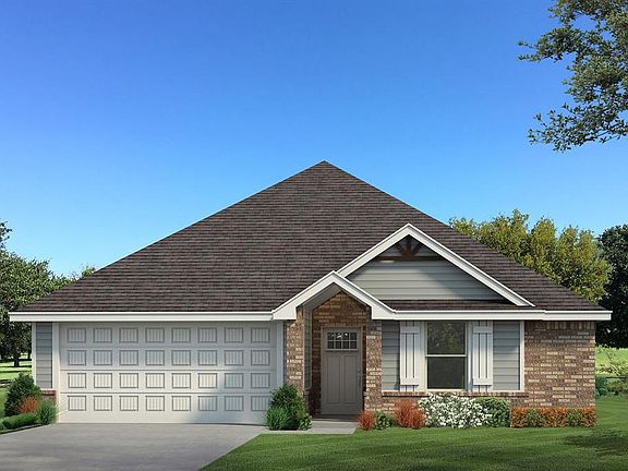 This John floor plan includes 1,310 Sqft of total living space, which includes 1,200 Sqft of indoor living space and 110 Sqft of outdoor living space. There is also a 385 Sqft, two car garage with a storm shelter installed. This new home offers 3 beds, 2 baths, 2 covered patios, and a utility room! The living room includes high ceilings, exquisite wood-look tile, a ceiling fan, the perfect sized windows, and Cat6 wiring. The kitchen spotlights custom-built cabinets with decorative hardware, stainless-steel appliances, decorative tile backsplash, elegant countertops, and wood-look tile. The primary suite features 2 windows, a ceiling fan, our cozy carpet finish, and a sizeable walk-in closet. Attached is the upgraded primary bath, which holds a dual sink vanity complimented by a 3 CM quartz countertop, satin nickel features, and a tub/shower combo. Outdoor living includes fully sodded yards, a smart home irrigation system, and 30-yr weather wood shingles. Other amenities include a water-saving tankless water heater, a fresh air intake system, R-15 & R-38 insulation, and so much more!