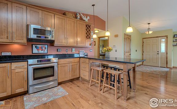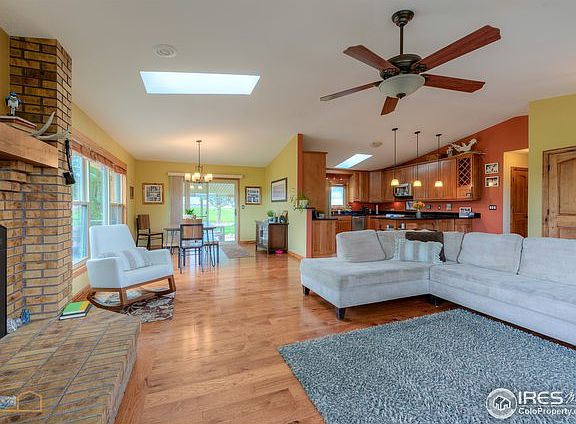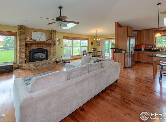 A SLICE OF HEAVEN! Gorgeous 3 bed 2 bath ranch style complete remodel on 2.1 peaceful acres. FANTASTIC MOUNTAIN VIEWS & beautiful sunsets! Wide plank Hickory floors with custom alder doors & woodwork. Kitchen has maple cabinets, granite & stainless appliances. Bathrooms are new too.In addition to the beautiful home there is a 3 car heated garage & a storage building. Horses allowed. Home has a newer roof, windows, A/C, furnace and patio. Close to downtown Berthoud, TPC golf course & Carter Lake.