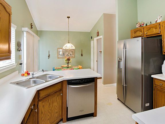 Nice floor plan. Vaulted ceiling adds to the open feel. Fabulous location with quiet Park outside of your fenced yard, enjoy the covered patio AND a paver patio also in the private landscaped fenced back yard. Three bedrooms on main level with two bathrooms, eat in kitchen and separate dining room as well. Basement is HUGE - additional room could be a bedroom, guest room, craft room, office, whatever you need it to be. Large recreation area with additional full bathroom PLUS an amazing amount of storage space. This great house needs a little updating to maximize the great locale and floorplan. Make it yours.