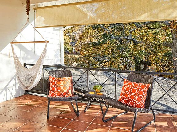 Outdoor areas are shared with other guests and are available on a first-come, first-serve basis, including a gas barbecue, hammocks, a fire pit, an outdoor dining room with seating for 10, corn hole, a covered front porch with a sectional sofa, swings, native gardens, and fountains. Free parking is available on the street in front of the house.