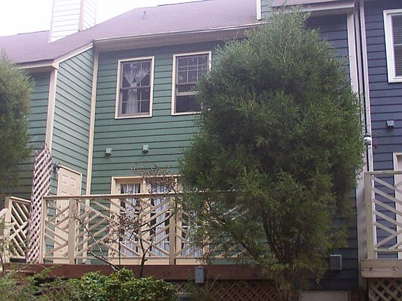 Woodstream Glen Townhome Yuppie in the front and country in the back. Beautifully landscaped Williamsburg style townhouse in safe neighborhood. Downstairs level has LR/DR with FP, built in bookcases,1/2 bath, carpeted. kitchen with all appliances, private deck with storage area that overlooks woods. Upstairs has (2)Master bedrooms (each has ceramic-tiled full bath and large walk-in closets), storage closet in one BR, linen closet and utility closet with washer/dryer. Ideal for couple or (2) professionals/students. Small pets negotiable on a case by case basis. Convenient to Duke (near Durham Academy (3 miles to Duke , Chapel Hill -UNC 7.8 miles, and RTP 14 miles). Shopping/Dining nearby. City greenway in back leading to Sandy Creek Park. Heat/air conditioning highly efficient-A BIG PLUS